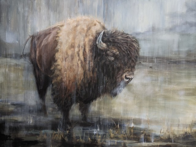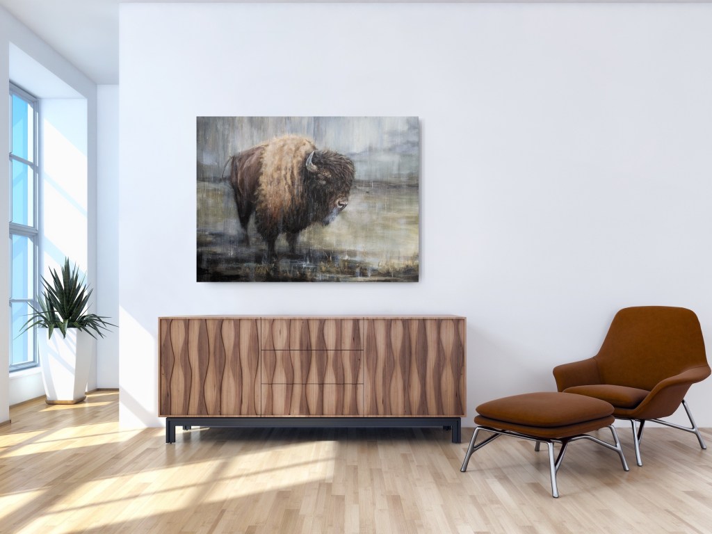 This piece was inspired by my time out in the elements on the Colorado Trail, and painted during a time when I needed to embody calm and resilience. The bison has always stood for strength and steadfastness, and it is my hope that its viewers are reminded to stand tall through the storm.